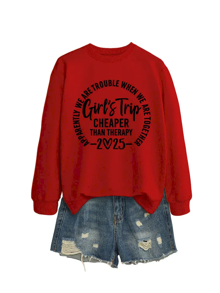 Women Casual Solid Color 2025 Letter Print Round Neck Long Sleeve Sweatshirt