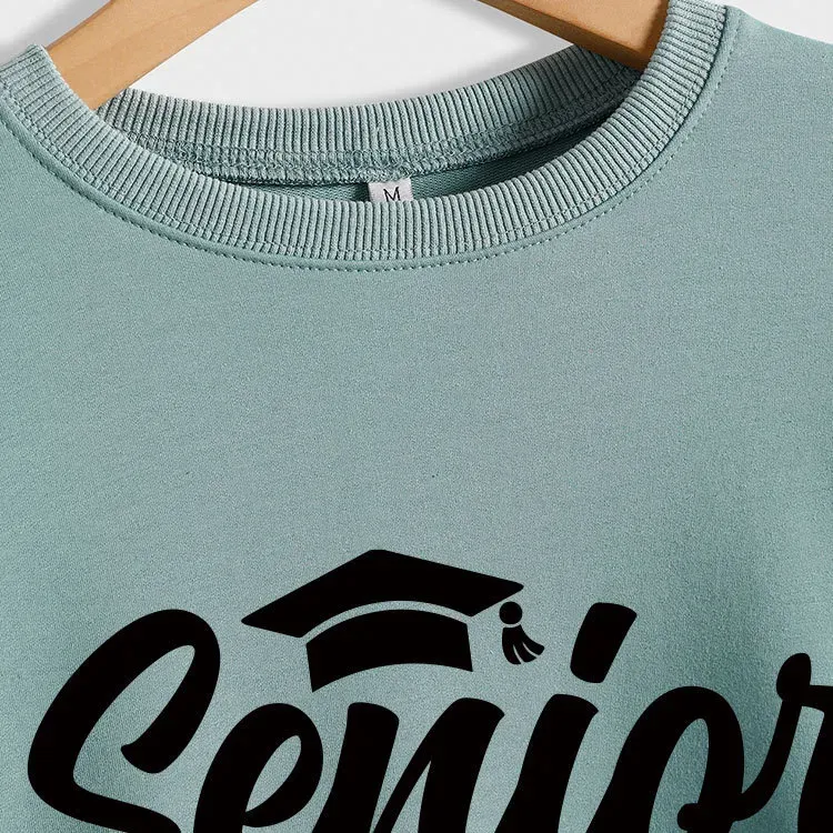 Women Casual Solid Color Mom 2025 Letter Print Round Neck Long Sleeve Sweatshirt