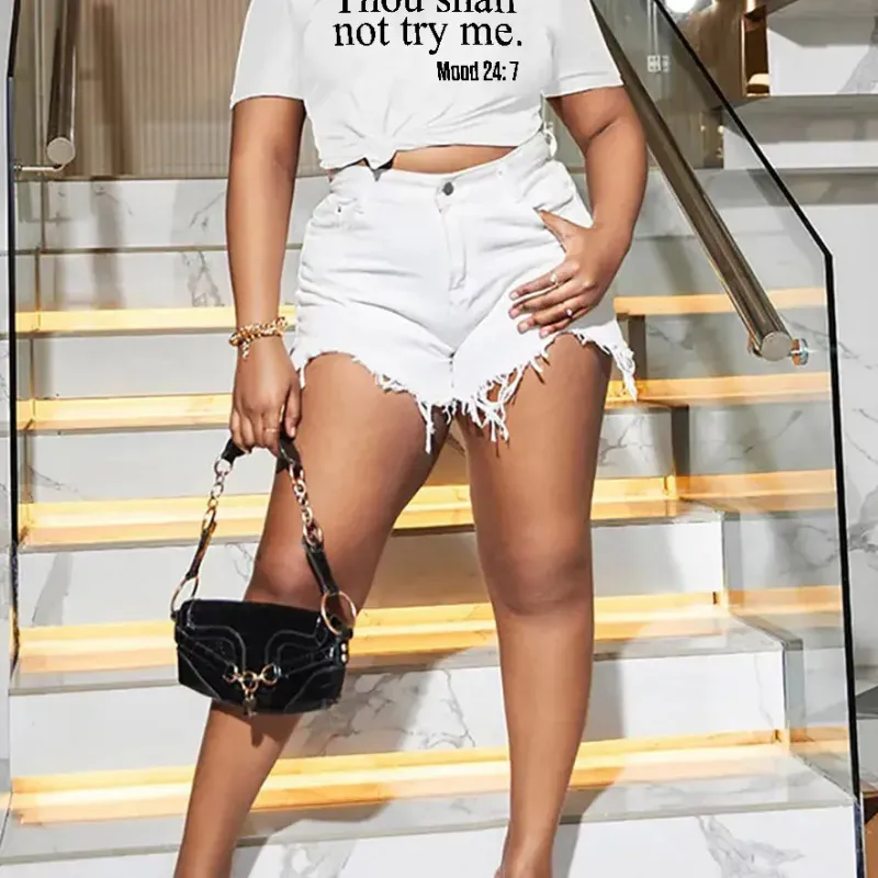Women Casual Short Sleeve Round Neck Letter Slogan Printed T-Shirt