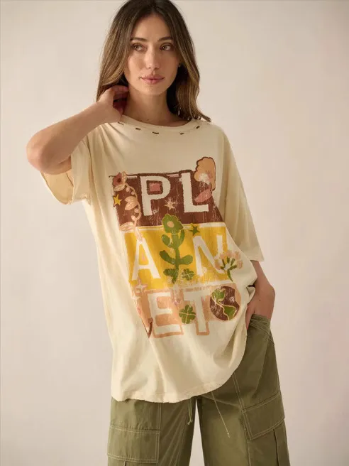 Women Fashion Casual Letter And Turtle Printed Round Neck Short-Sleeve T-Shirt
