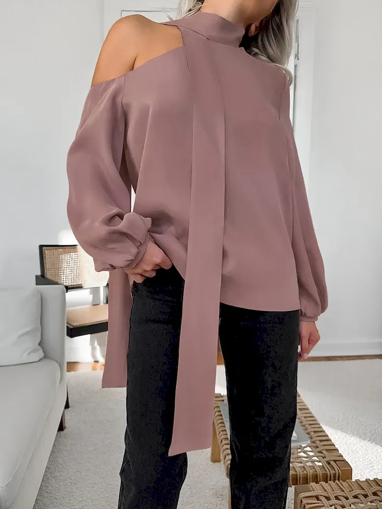 Women Fashion Shed Irregular Collar Long Sleeve Shirt