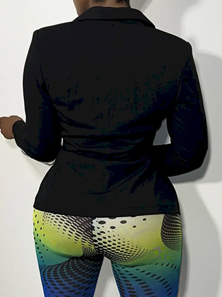 Women Casual Solid Color Strap Long Sleeve Blazer Coat
