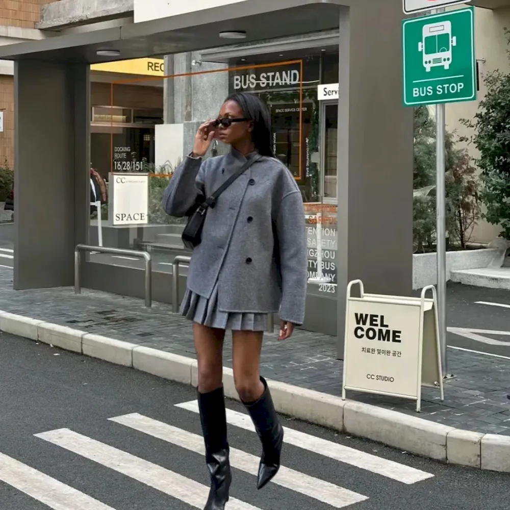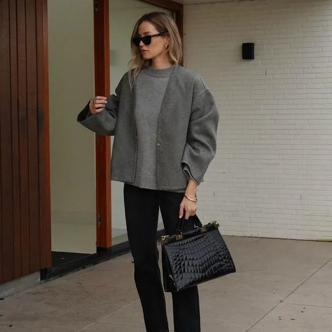 Women Fashion V-Neck Woolen Cardigan Single Button Jacket