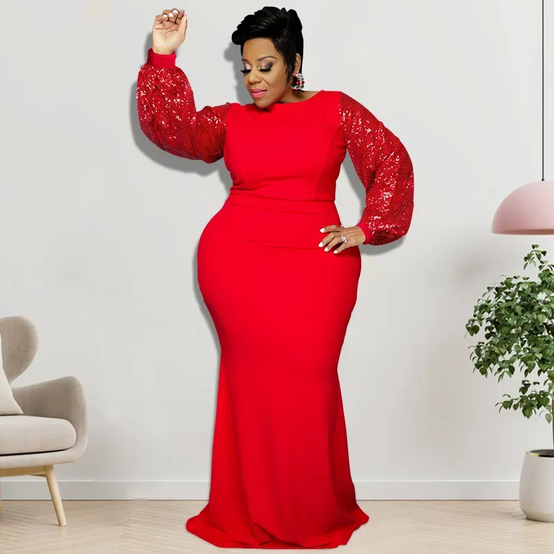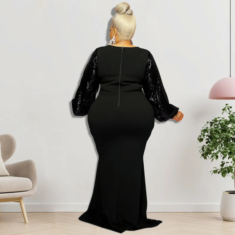 - Clothing Style Details: Sequin Flare-Sleeve One-Piece Long Mermaid Dress With Round Neck And Center Back Zip