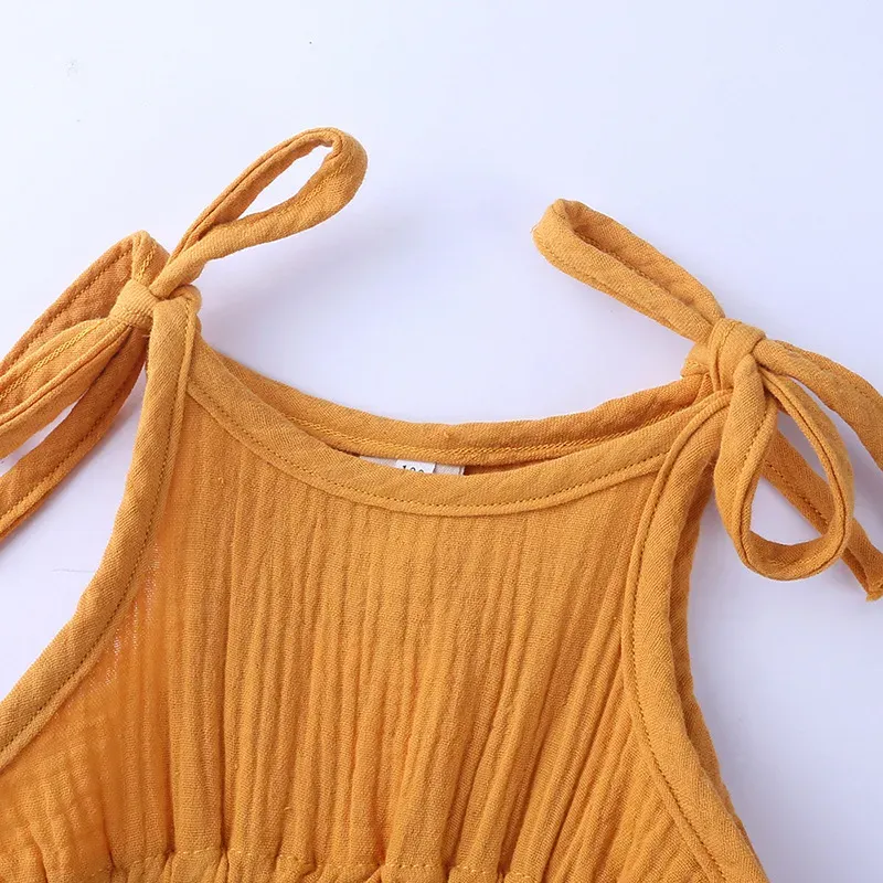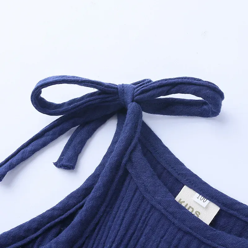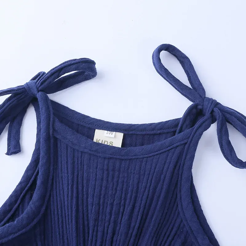 Wholesale Kids Girl’S Fashion Elegant Solid Color Pleated Stitching Sleeveless Dress