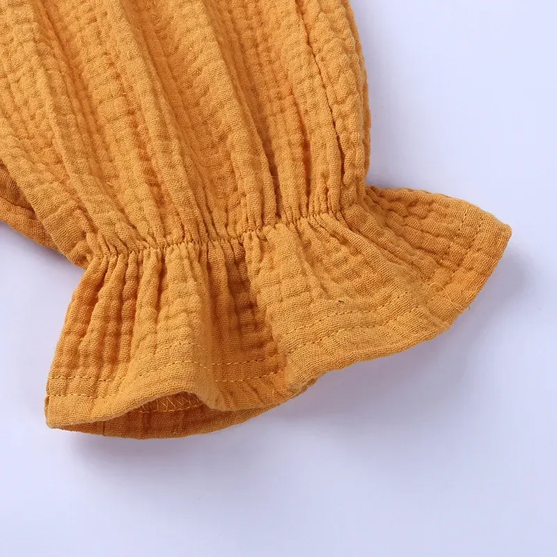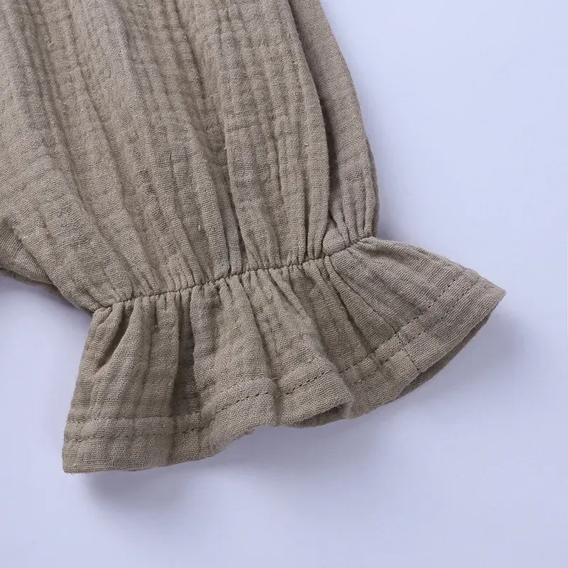 Wholesale Kids Girl’S Fashion Elegant Solid Color Lapel Long Sleeve Ruffled Dress