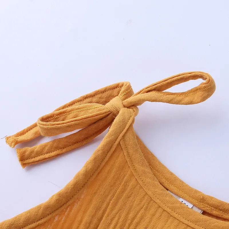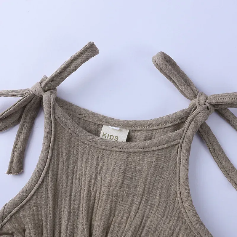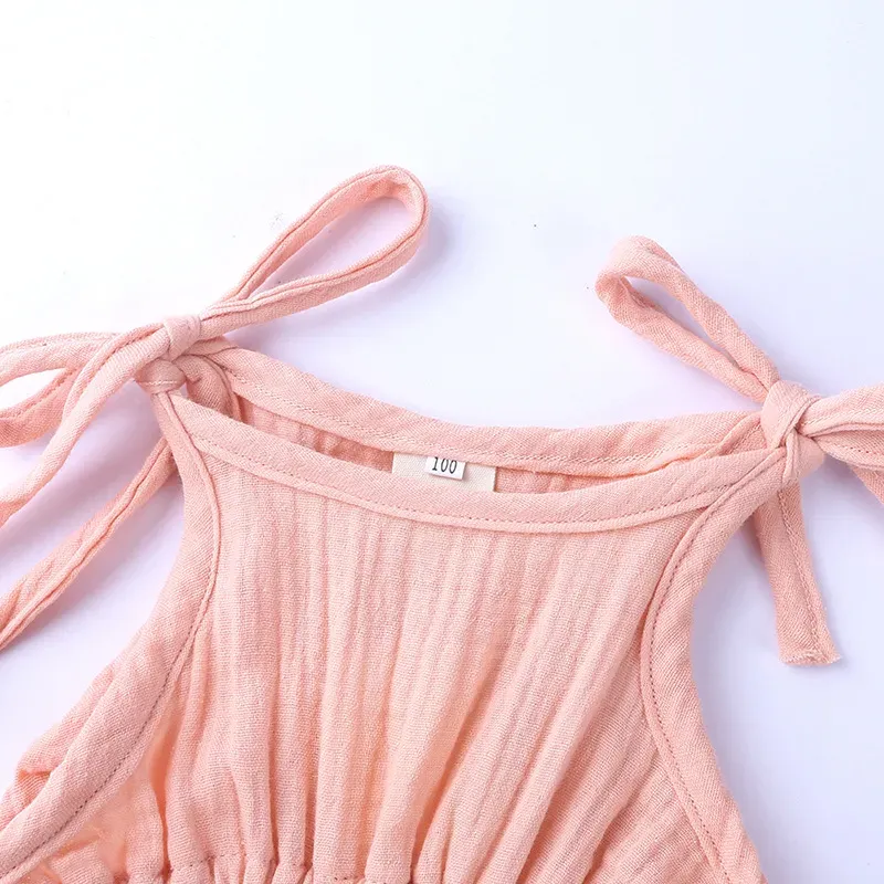 Wholesale Kids Girl Fashion Casual Solid Color Lapel Sleeveless Pockets Belt Dress