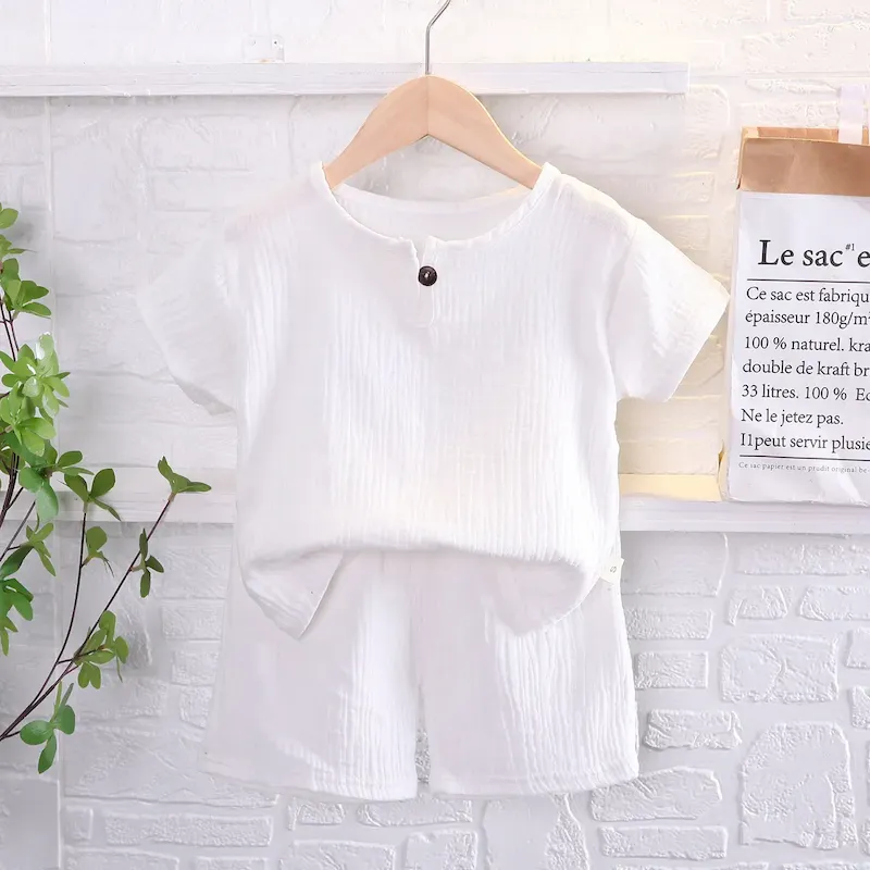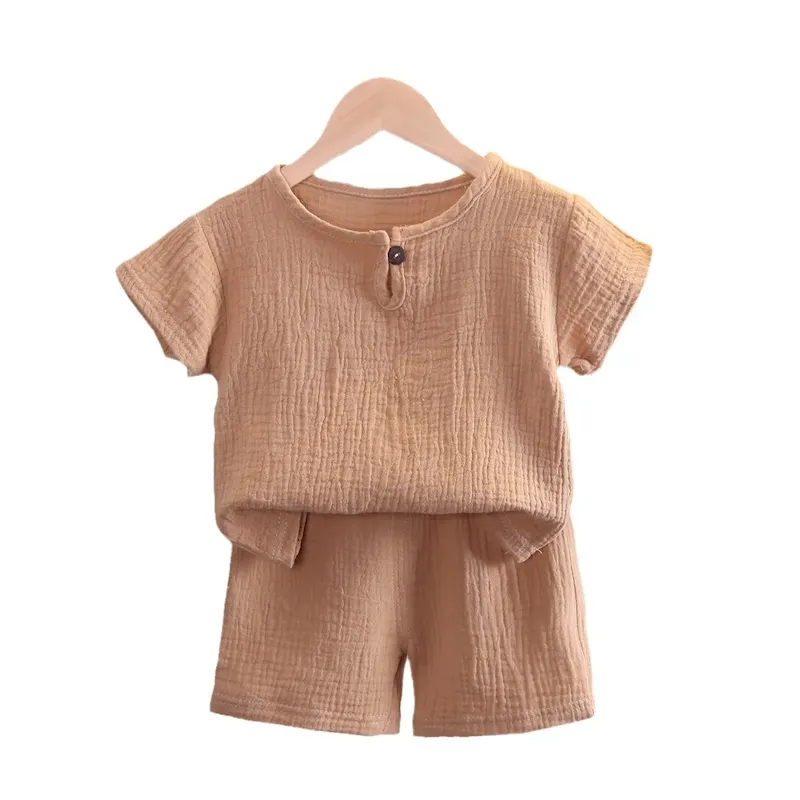 Wholesale Kids Toddler Boys Girls Casual Solid Color Short Sleeve T-Shirt Trousers Sets