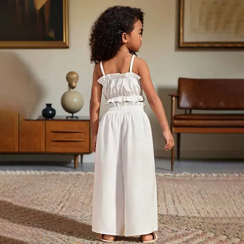Wholesale Kids Toddler Girls Casual Cute Solid Color Flounced Camisole Trousers Sets