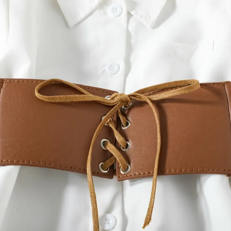 Wholesale Kids Girl Fashion Casual Solid Color Lapel Sleeveless Pockets Belt Dress