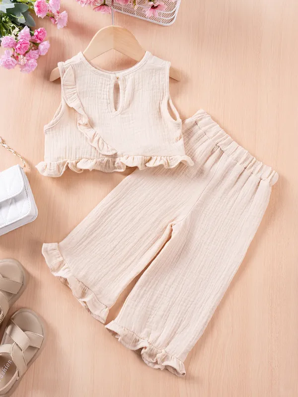 Wholesale Girl’S Fashion Printed Sleeveless Vest And Jeans Two-Piece Set