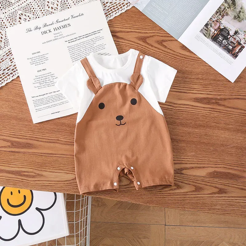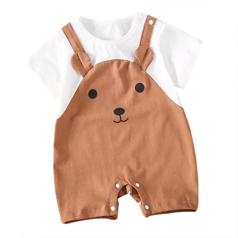| Color | Fake Two-Piece Bear Half-Sleeve Conjoined Beige, Fake Two-Piece Bear Half-Sleeve One-Piece Cafe |