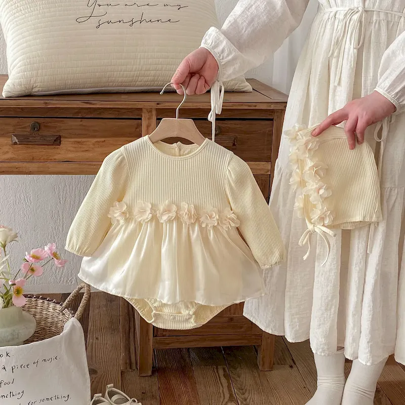 Wholesale Kids Girls Fashion Pu Leather Fake Two-Piece Puffy Yarn Long-Sleeve Mesh Dress