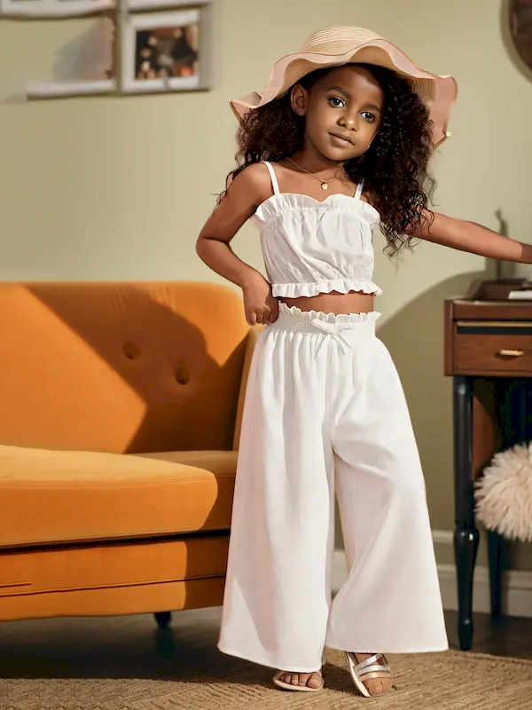 Wholesale Girls Simple Solid Color Short Sleeve Hollow Out Top And Denim Pants Set