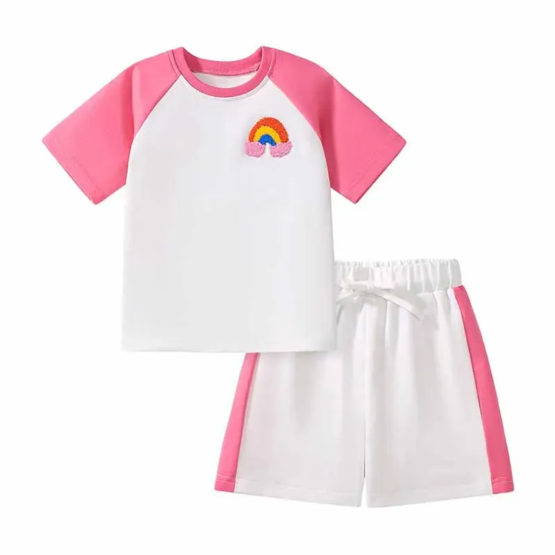 Wholesale Girls Simple Solid Color Short Sleeve Hollow Out Top And Denim Pants Set