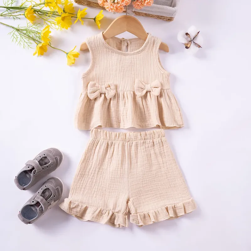 Wholesale Kids Toddler Girls Casual Cute Solid Color Flounced Camisole Trousers Sets