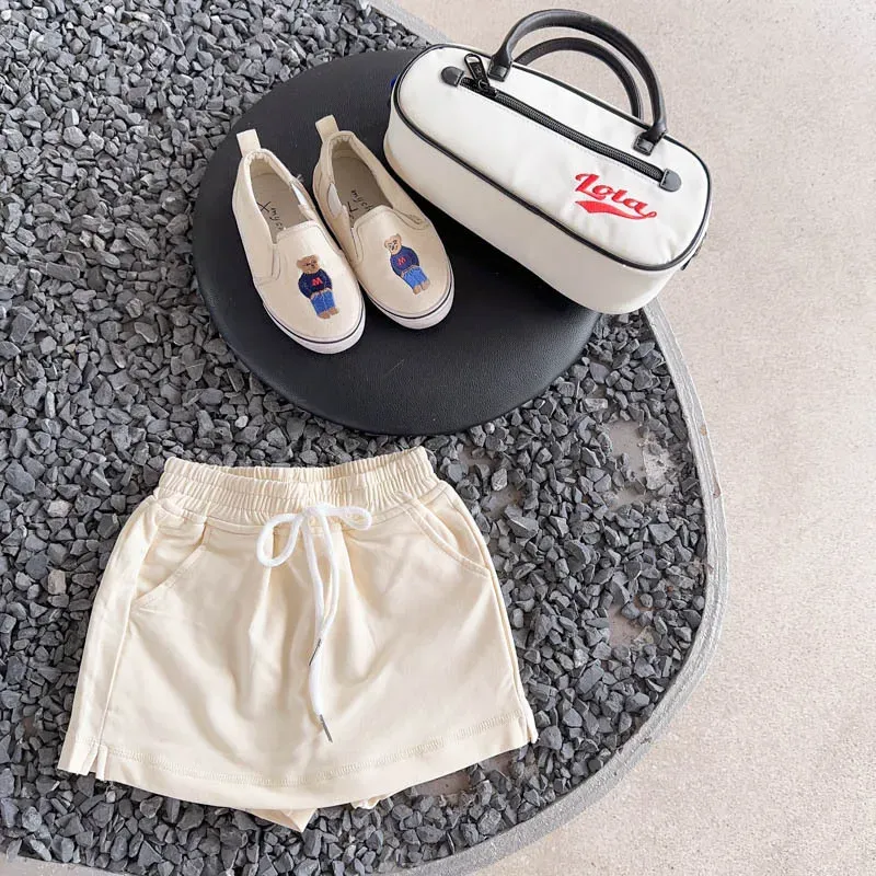 Wholesale Kids Girls Fashion Elegant Solid Color Lace Embroidered Lapel Short-Sleeve Lace-Up Dress