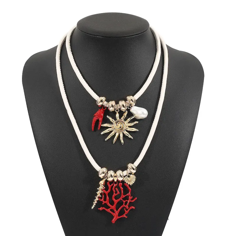 Wholesale Women Fashion Casual Beach Sun Coral Double Layer Leather Rope Necklace – Premium Fashion Apparel for Modern Life