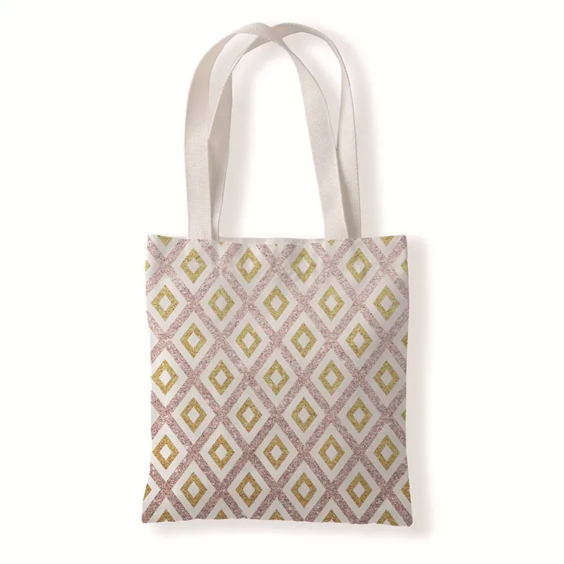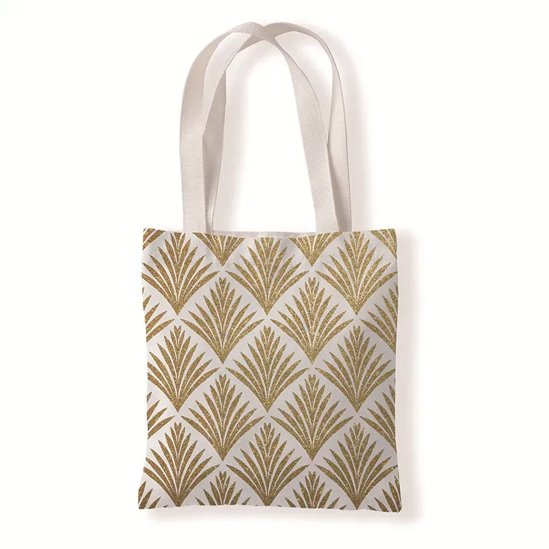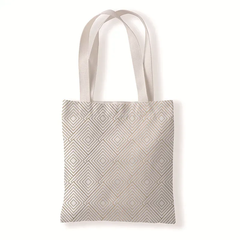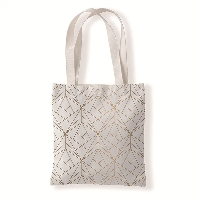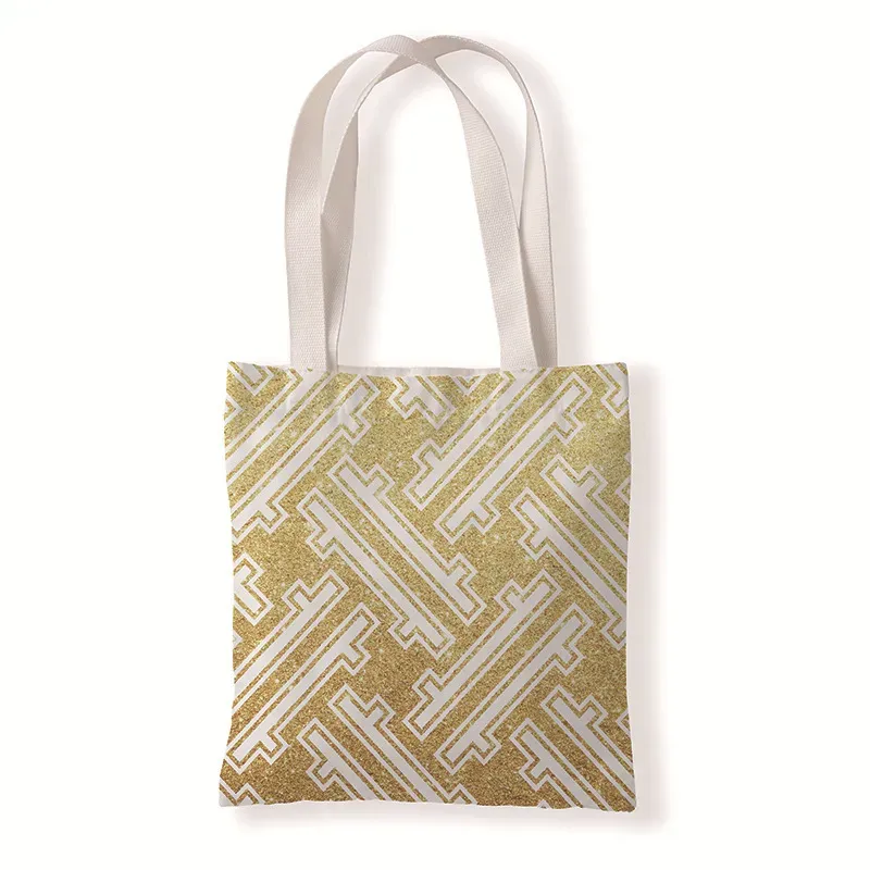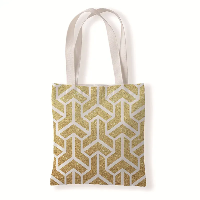 Women Fashion Gold Geometric Print Canvas Tote Bag
