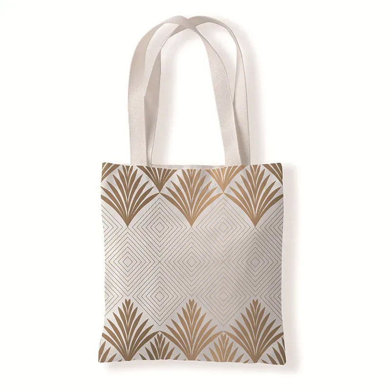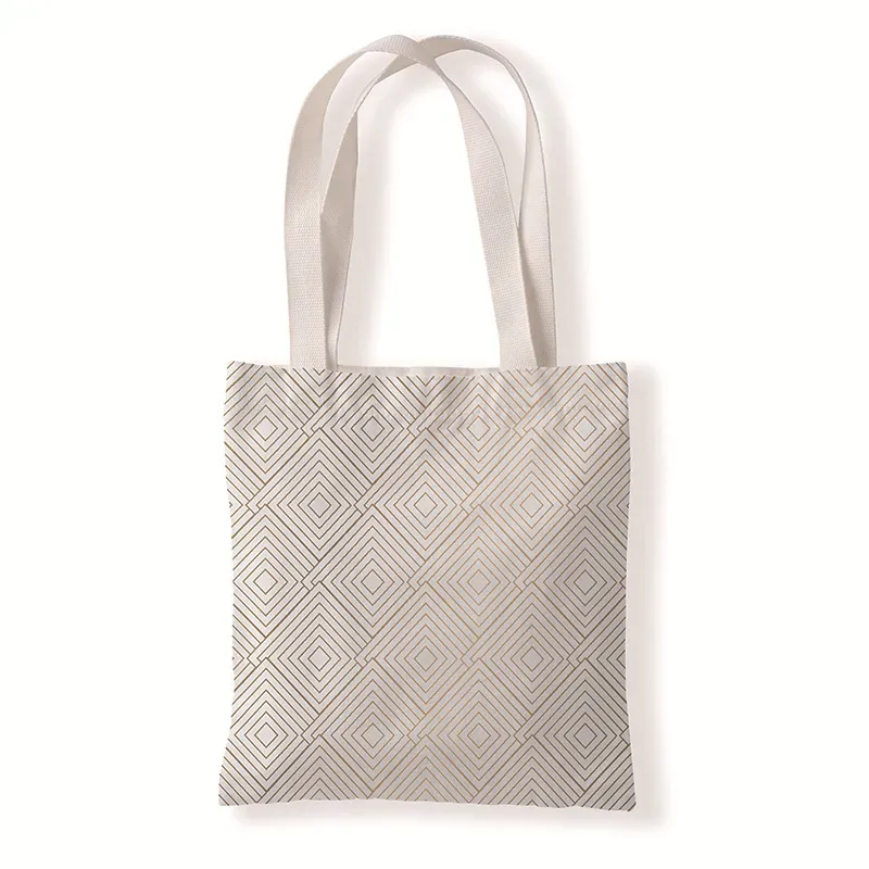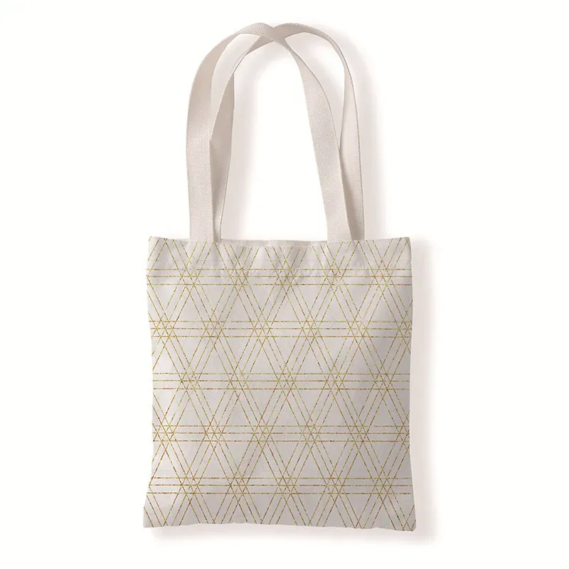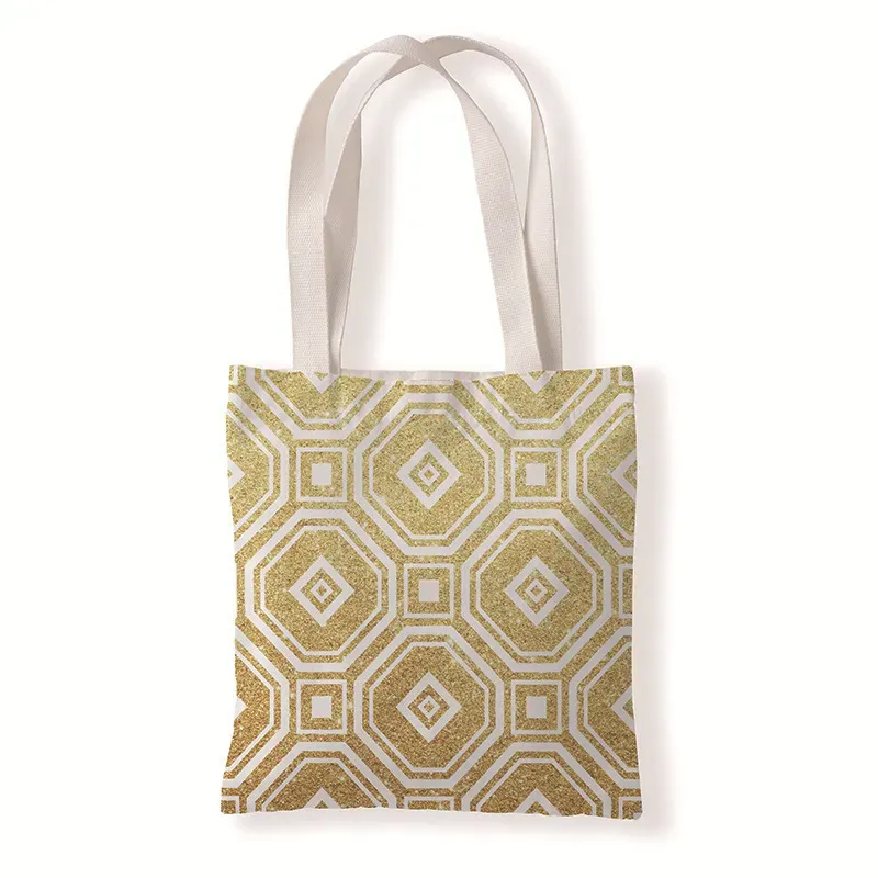 Women Fashion Gold Geometric Print Canvas Tote Bag – Premium Fashion Apparel for Modern Life