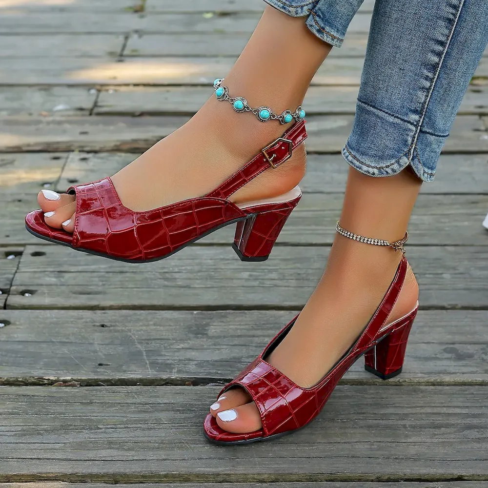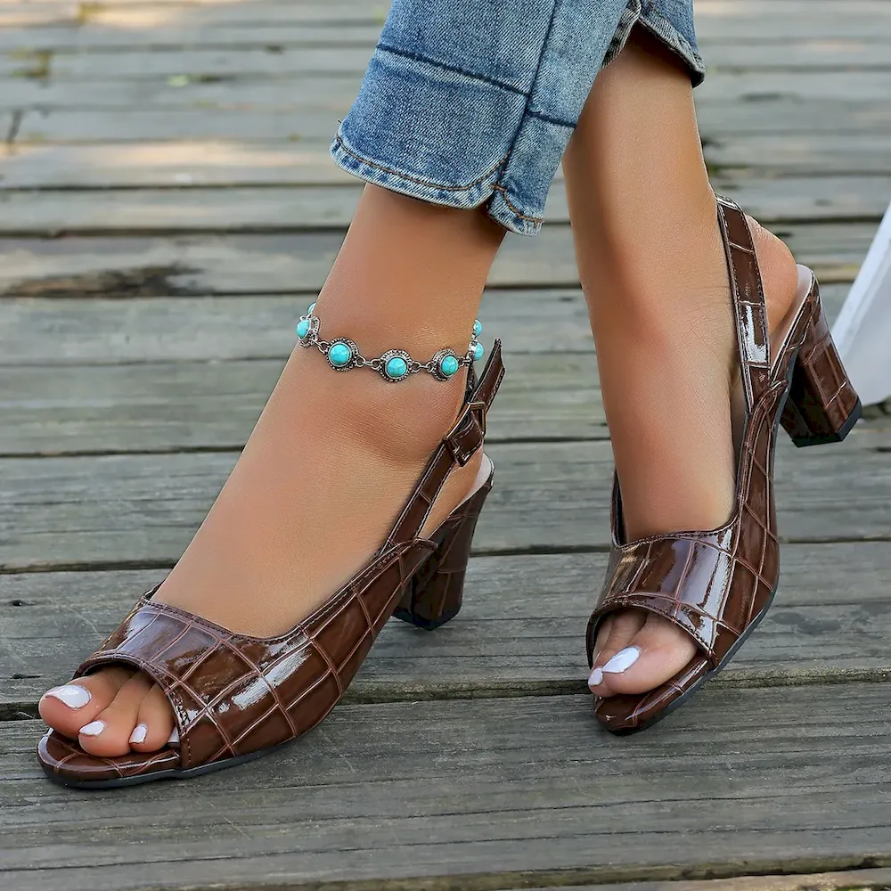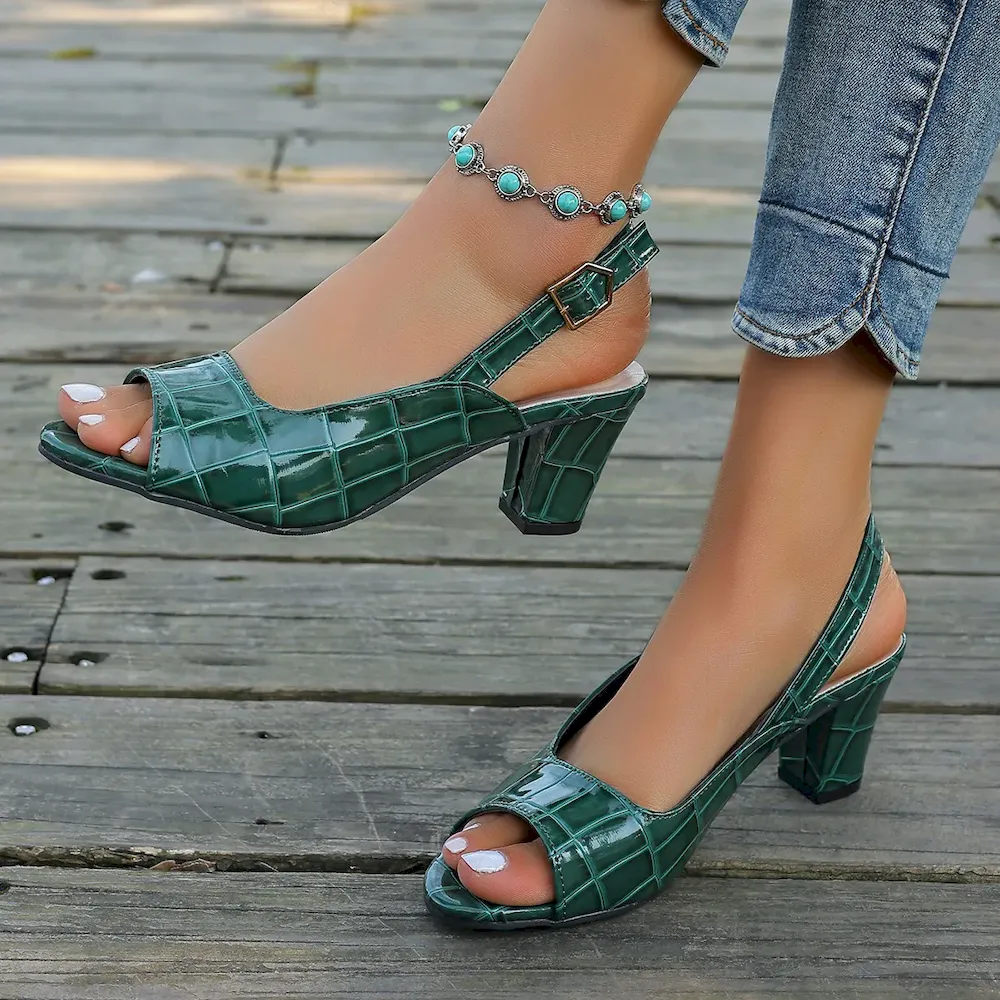 Women Fashion Solid Color Stone Pattern Peep Toe Thick High-Heeled Shoes – Premium Fashion Apparel for Modern Life